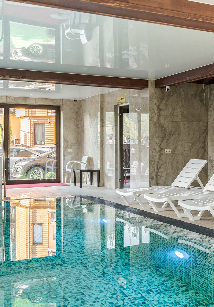 Тут на вас чекає великий басейн, хамам та фінська сауна. Обирайте ваш формат відпочинку.