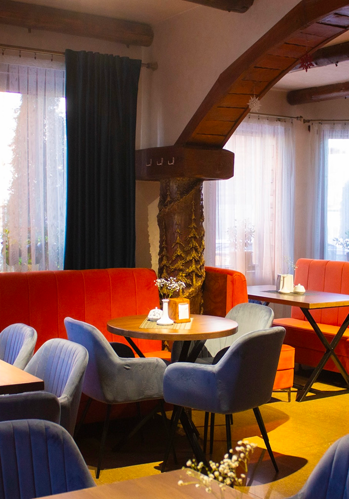 Тут вам запропонують страви гуцульської кухні, а досвідчений персонал допоможе визначитися з вибором.Професійні кухарі приготують за запитом дієтичні страви, а для тих, хто бажає взяти обід із собою на схили, можливо запакувати його в ланч-бокси.